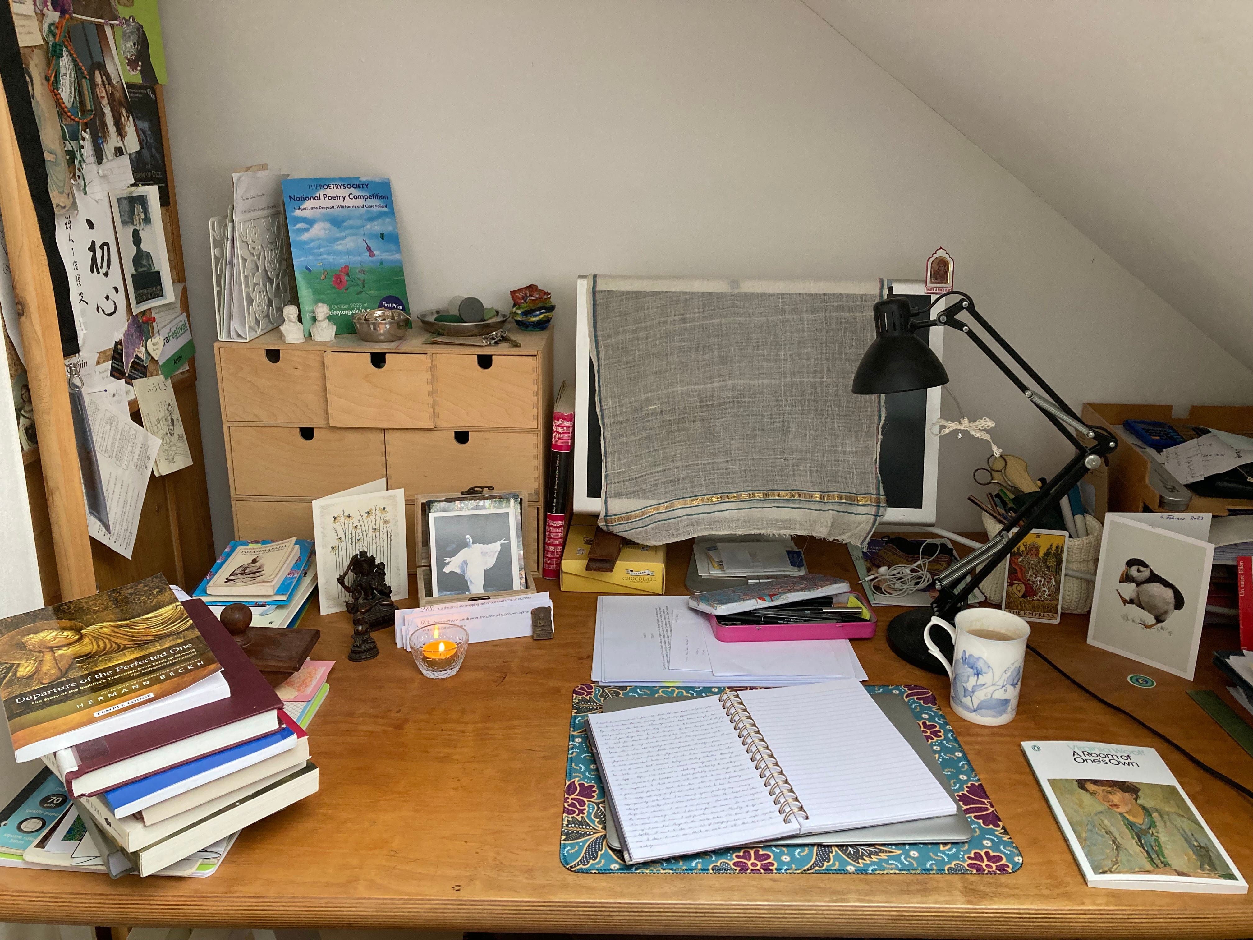 When we moved into our present house a few years ago, we gave up claims to any spare bedroom so that each of the children could have their own room. After all, my husband had an office at his workplace, and I was concentrating on my eurythmy training. Space to move in the open plan kitchen and dining room seemed more important than a space to write. The desk was pushed into a corner in our attic bedroom, wedged between the wardrobe and shelves.